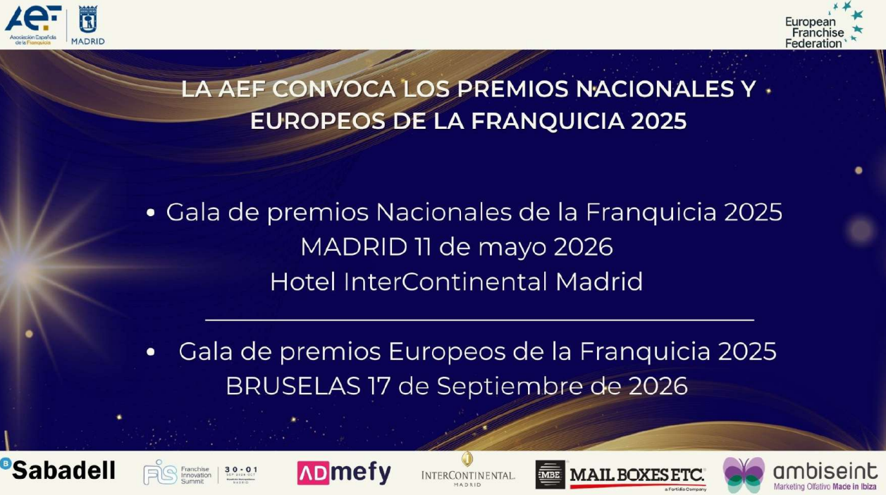 La Asociación Española de la Franquicia (AEF) ha convocado oficialmente la V edición de los Premios Nacionales y Europeos de la Franquicia 2025, una iniciativa que reconoce la excelencia, la innovación y la capacidad de crecimiento del modelo de franquicia en España y Europa.